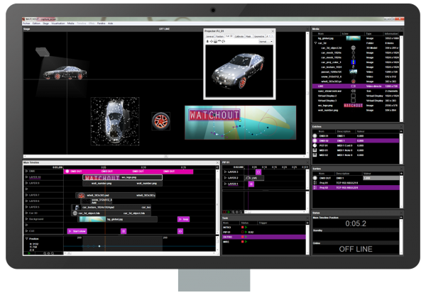 Le logiciel de multi-diffusion WATCHOUT est la solution qui vous permet de créer rapidement des shows spectaculaires. WATCHOUT permet de composer et de gérer tous les contenus multimédia de votre show : vidéos, images fixes, animations, graphismes, acquisitions vidéo, audio, pour les afficher sur plusieurs écrans. Le tout parfaitement synchronisé, en haute résolution.