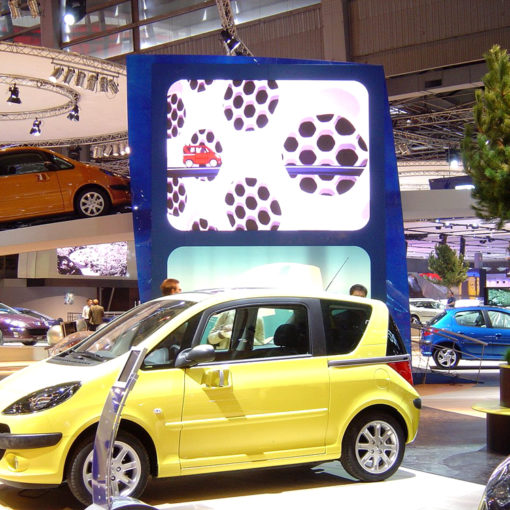 Vu l’angle de projection des Christie, placés dans les cintres à plus de 4 m au-dessus du haut de l’écran, les contraintes furent surtout liées au réglage du warping sur le cyclo car le parallaxe était très accentué.