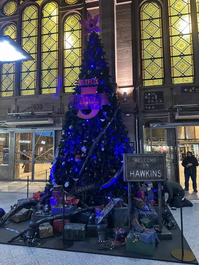 Quel est le meilleur moyen d’envoyer un message de l’Upside Down vers notre monde ? Avec un boîtier Zendeo ! Notre solution permet à la société In/Off de synchroniser le son issu d’un lecteur Brightsign avec la lumière des guirlandes installées sur un sapin dans la gare de Strasbourg, ce qui parlera aux fans de la série Netflix à succès. La lumière des guirlandes et des spots est pilotée en Art-Net et est synchronisée avec la bande-son thème années 80 liée à la série. Cette installation fait partie de la campagne de Netflix en France pour la sortie de la saison 5 de la série Stranger Things, qui comprend d’autres affichages lumineux à Bordeaux et à Lyon.